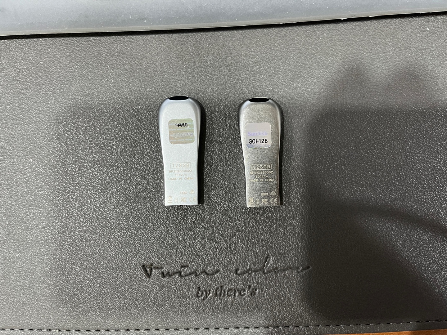 왼쪽이 에*** 제품, 오른쪽이 소*** 제품 둘다 128GB인데 찍고 보니 완전 다르네요