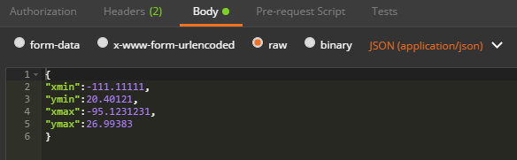 | { "xmin":-111.11111, "ymin":20.40121, "xmax":-95.1231231, "ymax":26.99383 } |