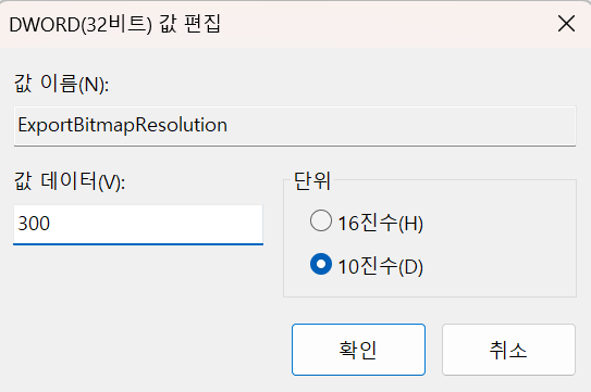 ExportBitmapResolution 10진수 값이 150일 때 (화면 24인치 미만)