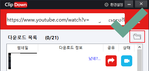 모든 파일이 다운로드 완료되면 우측위에 폴더를 눌러 다운받은 폴더를 열 수 있습니다.